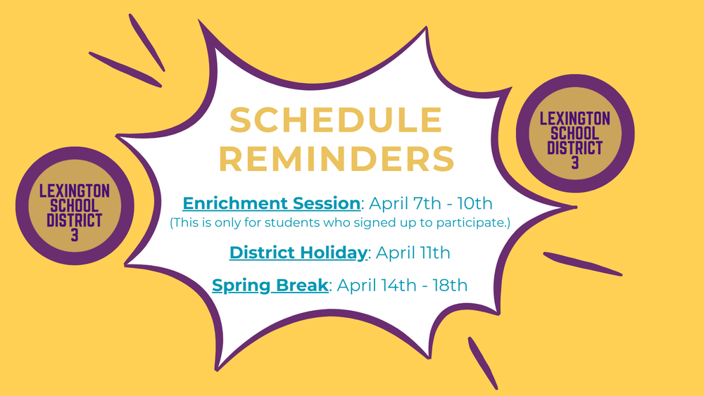 Lexington County School District Three would like to remind all Panther families of our upcoming Winter Break schedule and important dismissal times. On Friday, December 19th , ...